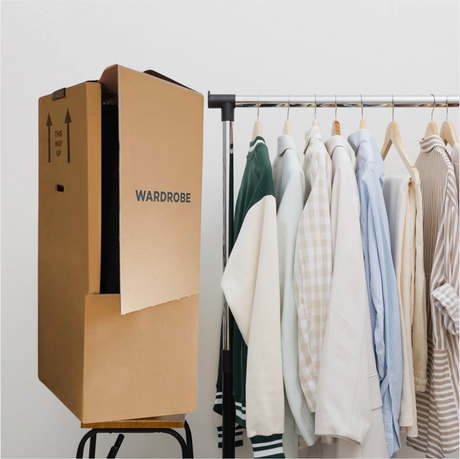 Double-Wall Wardrobe Moving Box with Hanging Rail | Strong & Spacious Clothing Box